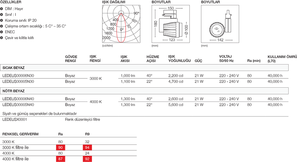 Bu seçkin spot aydınlatma serisi, yüksek teknolojiye sahip bileşenleri sayesinde en zorlu aydınlatma ihtiyaçlarına yanıt veriyor. İster ürünlerin yüksek kalitede teşhiri, ister sanat eserlerinin sergilenmesi amacıyla olsun farklı renk spektrumu ve yansıtılan hüzme özellikleri yaratıcı çözümlere örnek oluşturuyor. Kusursuz renk üretimi ile eskinin 20 W HID lamba uygulamalarının yerine kullanım için son derece uygun. Dahili çipli tasarımı ile gölgesiz spot aydınlatma en yüksek güç yoğunluğunu ve optimum ısı yönetimini sağlıyor.