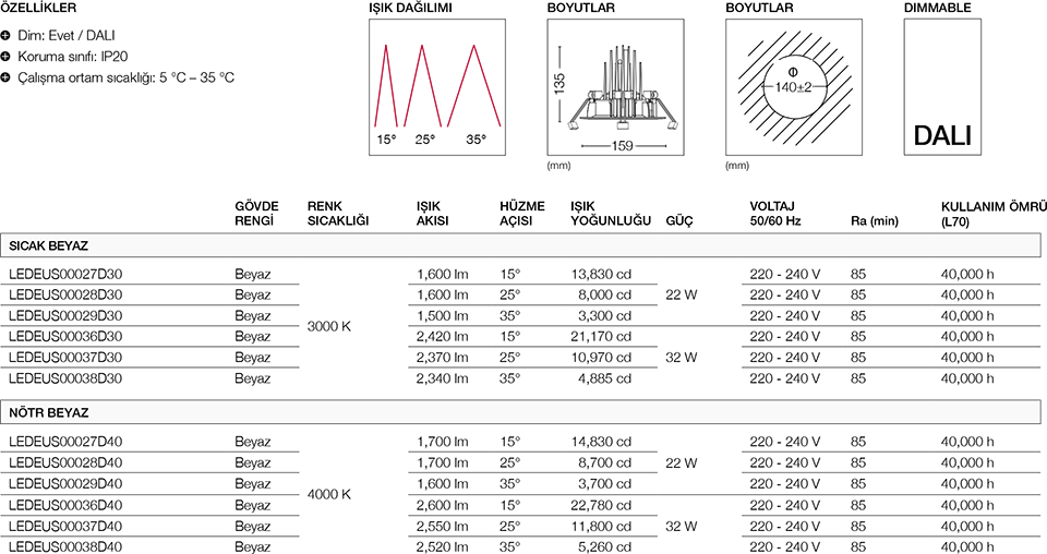 İki farklı renk ısısı, üç ana renk ve opsiyonel Yüksek CRI filtresi ile gömme spot aydınlatmalar tüm perakende alanlarına uygulanabiliyor ve mükemmel uyum sağlıyor. Aynı zamanda, lamba başlıklarının dönebilir olması, mekanın sınırlı olduğu alanlarda bile optimum kullanım esnekliği kazandırıyor. Bunlara ilave olarak, entegre bir aydınlatma konsepti yaratabilmek için çıkarılabilir spot aydınlatmalar her zaman NEOACCENT serisinin diğer ürünleri ile kombine edilebiliyor.
